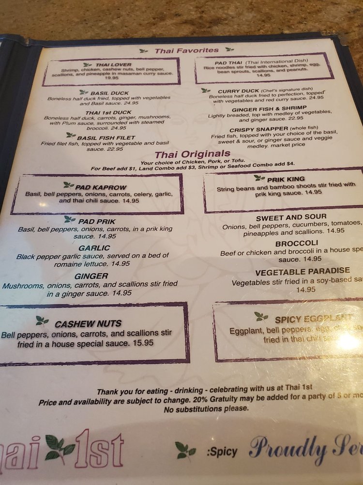 Introducing Thai First, a delightful culinary gem nestled in Downers Grove, Illinois. This vibrant Thai restaurant beckons with a menu that showcases authentic flavors and fresh ingredients. Start your culinary journey with the Tom Kha, a spicy hot and sour soup simmered perfectly with coconut milk, mushrooms, and aromatic spices. For those seeking lighter fare, the refreshing Cucumber Salad or the zesty Papaya Salad provide a crisp, flavorful introduction.